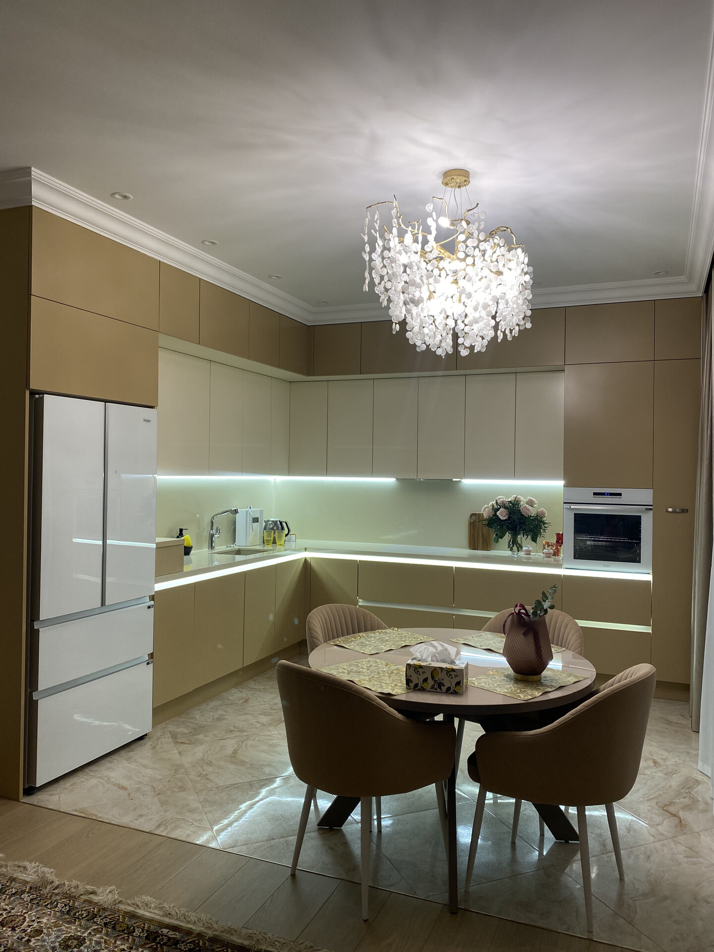 Реализованный проект П-образной кухни в классическом стиле