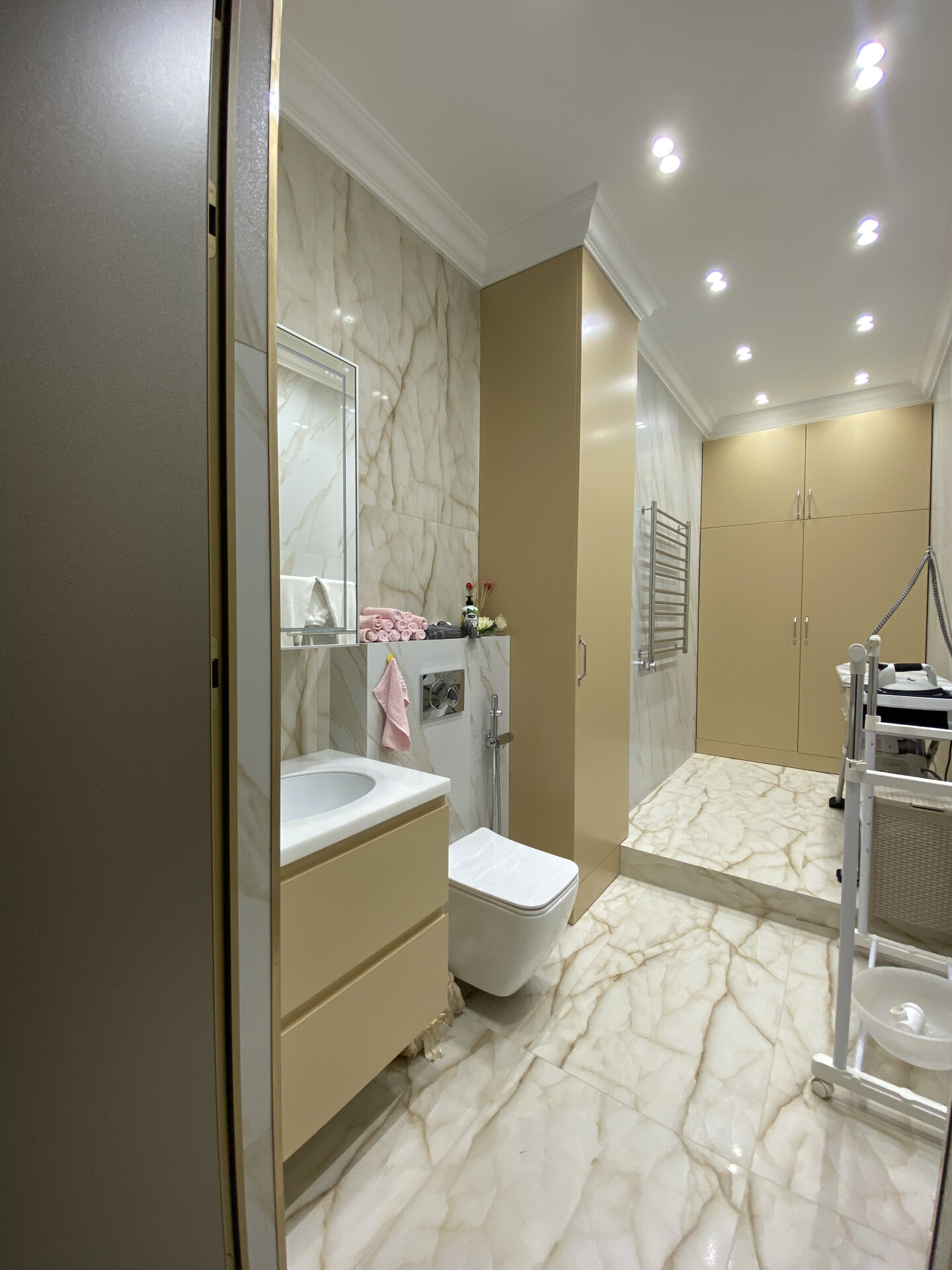 Реализованный дизайн проект ванной комнаты и входной группы